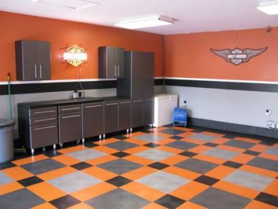 ADVERTISEMENTS ADVERTISEMENTS Like what you see in the featured photo? That’s a garage makeover. They used Harley colors to accomplish a Harley-themed garage. Click the link for more photos of this cool 4-car garage. Harley Davidson Garage