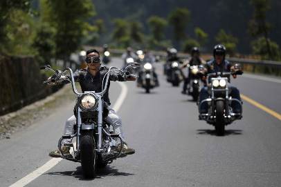 A man rides during the annual Harley Davidson National Rally in Qian Dao Lake, in Zhejiang Province, China, on May 11, 2013. Click the link to read full story. Harley Davidson National Rally In China