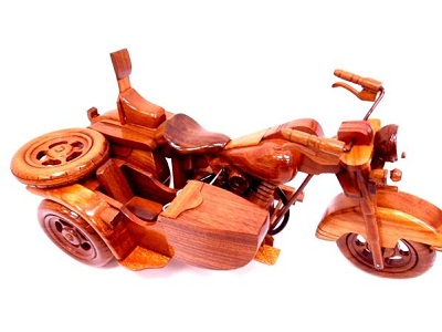 This classic Harley is handcrafted from mahogany with a working kickstand and movable handlebars. This finely detailed replica is triple coated in high gloss polyurethane finish. 13” Long x 6” Wide x 7” High. Get it here: Harley Davidson Motorcycle with Side Car