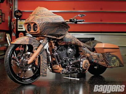 ADVERTISEMENTS ADVERTISEMENTS What a beauty! This was customized by someone who both loves baggers and tattoos. By just looking at it, there isn’t any doubt that he was able to successfully combine both! Click the link to find out more about this custom Harley. 2011 Harley-Davidson Road Glide
