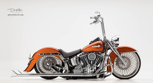 People collect all kinds of things: coins, stamps, comic books, trophies from their victims, you name it. For Bart Samuelson, collecting means motorcycles. No matter what people collect, one thing is constant: the drive to keep adding to the grouping and making it grow. Bart’s as joyfully guilty as anyone else of this; the bike you’re seeing before you is a 2013 Harley-Davidson Softail Deluxe turned lay-frame lowrider he says he needed to make his collection complete (at least, until the next bike, of course).