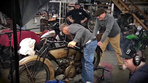 Here, Dale brings a 1920 Sport Twin model to life. While an opposed twin configuration is commonly found on other motorcycles, it’s a rare sight to see on a Harley-Davidson.