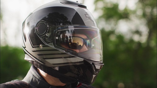 To help you keep your cool, find ample ventilation on this full-face motorcycle helmet. Matte black with chrome accents is styled for urban and touring adventures.